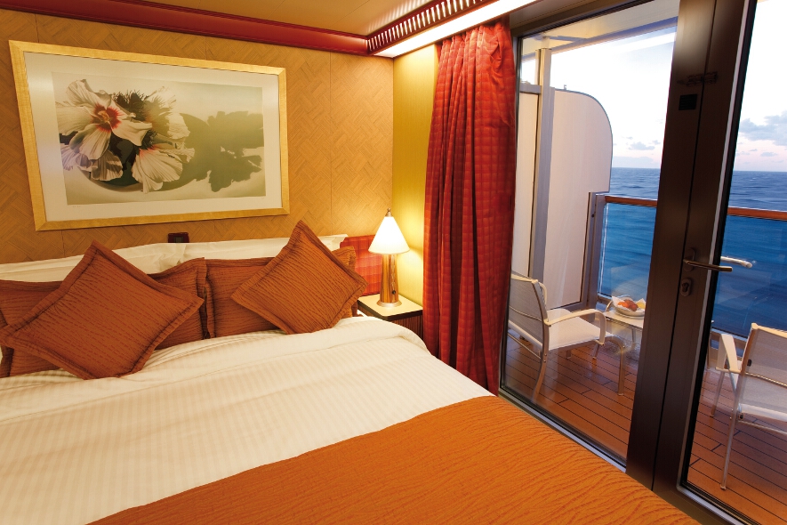 Insgesamt 1.130 Kabinen, davon 52 mit direktem Zugang zumSpa, 662 mit privatem Balkon, 106 Suiten mit privatem Balkonund 4 Suiten mit direktem Zugang zum Spa
